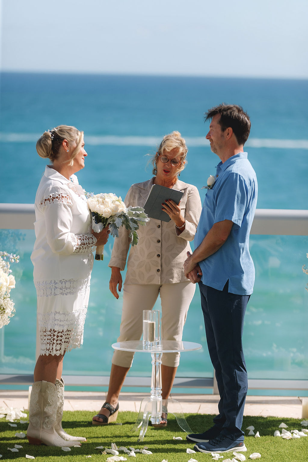 Yes, but plan around the heat. Sunrise ceremonies between 6:30 and 8:00 AM are your best bet — cooler air, empty sand, soft light. Late evening ceremonies starting around 6:30 PM also work well once the worst of the heat passes. Avoid anything between 11:00 AM and 4:00 PM. Bring water, have shade available, and wear lightweight fabrics. Your photographer will thank you.