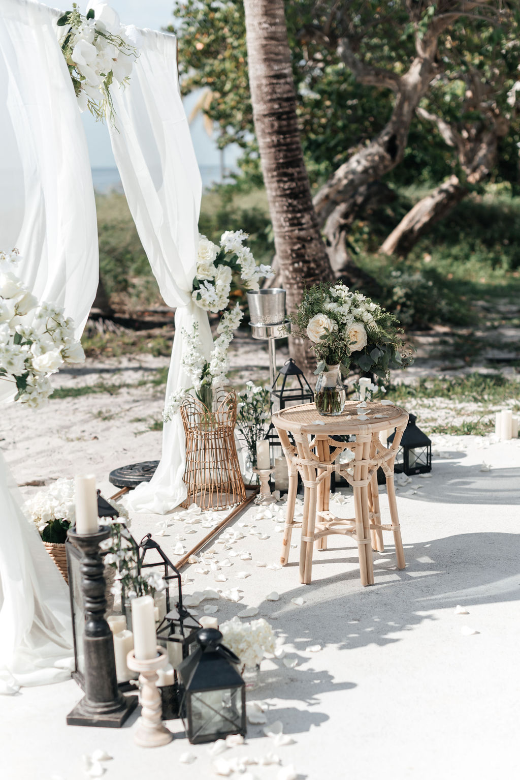 45 minutes before: You arrive at the ceremony location separately or together, depending on whether you want a first look. I set up the ceremony space while you take pre-ceremony portraits.